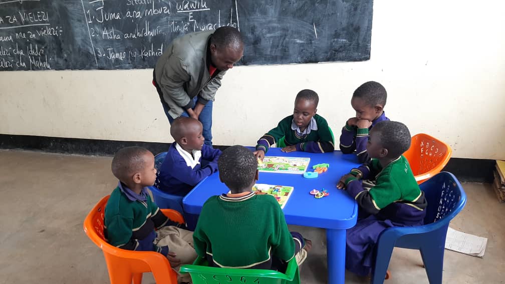 De kleuters zaten in het lokaal tussen de grotere kinderen. Sinds de overheid een nieuw gebouw heeft geplaatst zijn wij gestart met het inrichten van één van de lokalen voor de kleuters. De kleuters moeten hele andere vaardigheden omwikkelen voordat ze klaar zijn voor de grotere klas. Door ze een eigen plek te geven waar spel en ontdekken voorop staat zijn ze straks beter voorbereid voor de hogere groep.